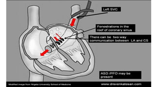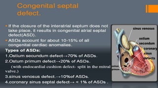3. Rarer types include sinus venosus defects (above or below the oval fossa), coronary sinus defects, and ostium primum defects located at the atrioventricular junction. Each has distinct developmental features and associations.