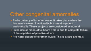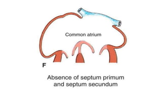 2. Abnormal development can result in several types of atrial septal defects (ASDs), the most common being a secundum ASD located in the area of the fossa ovalis.