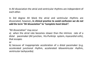 Atrio-ventricular dissociation occurs when the atrial and ventricular rhythms are independent of each other. It can happen when the atrial rate slows below the intrinsic ventricular rate, or due to inappropriate acceleration of the ventricular rate. Typically in AV dissociation the distal pacemaker, such as the ventricles, beats faster than the proximal pacemaker like the atria. In complete heart block the proximal pacemaker usually beats faster than the distal one. However, there are exceptions to using pacemaker rates to distinguish the two.