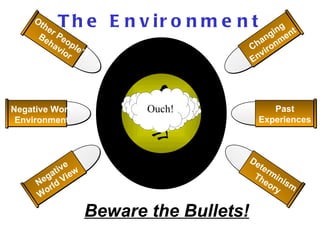 1) The document provides tips for staying positive in a tough work environment, including dealing with negative coworkers and external factors outside of one's control.