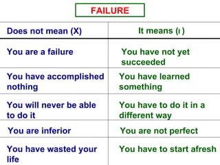 3. The document provides examples of successful people who overcame difficulties including deafness, stuttering, disability, and poverty to achieve great things. It encourages readers that they too can change their situation through perseverance.