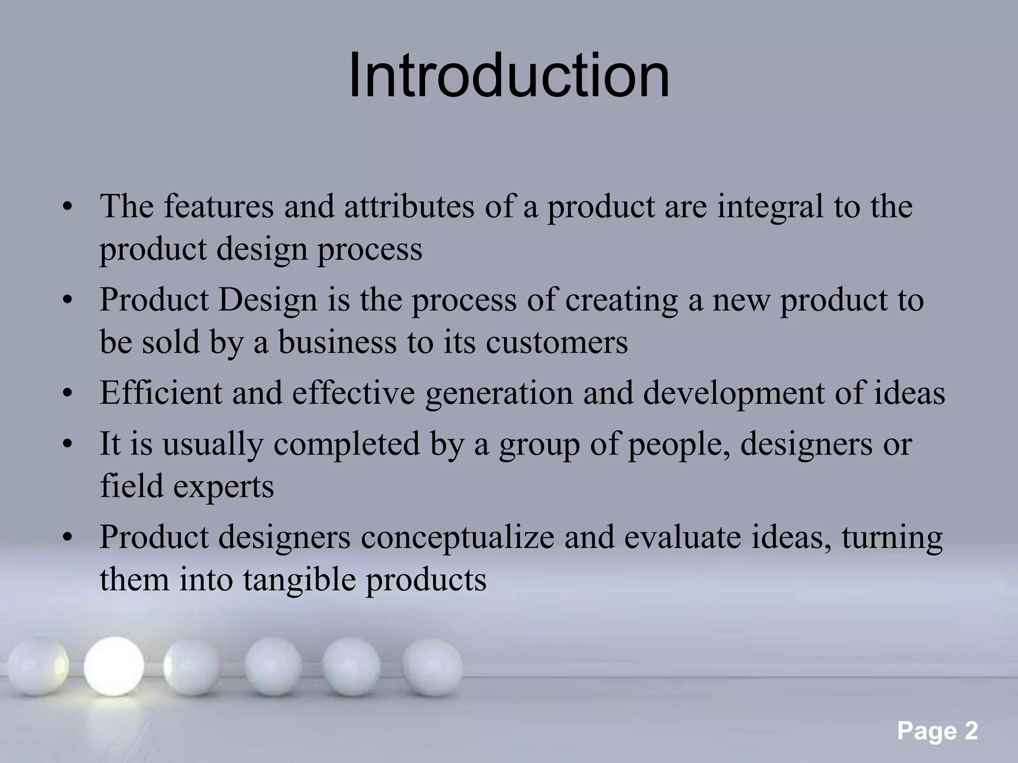 The document discusses key attributes in product design such as aesthetics, perception, symmetry, originality, color, texture, and form. It also contrasts concepts like handmade vs mass produced, fragile vs robust, and masculine vs feminine. Good design is described as being aesthetic, understandable, easy to use, thorough, and long-lasting. Lack of cooperation in design can lead to poor outcomes.
