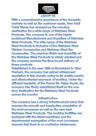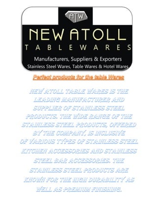 New Atoll Tablewares is a manufacturer and supplier of tableware products established in 1989 that is owned by Mr. Santosh Kumar Gupta and Mr. Rajan Gupta. It employs between 25 to 50 people and covers both the domestic and export markets.