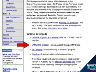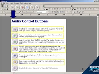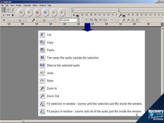 The document provides instructions for creating a podcast using the audio software Audacity. It outlines the basic steps, which include: