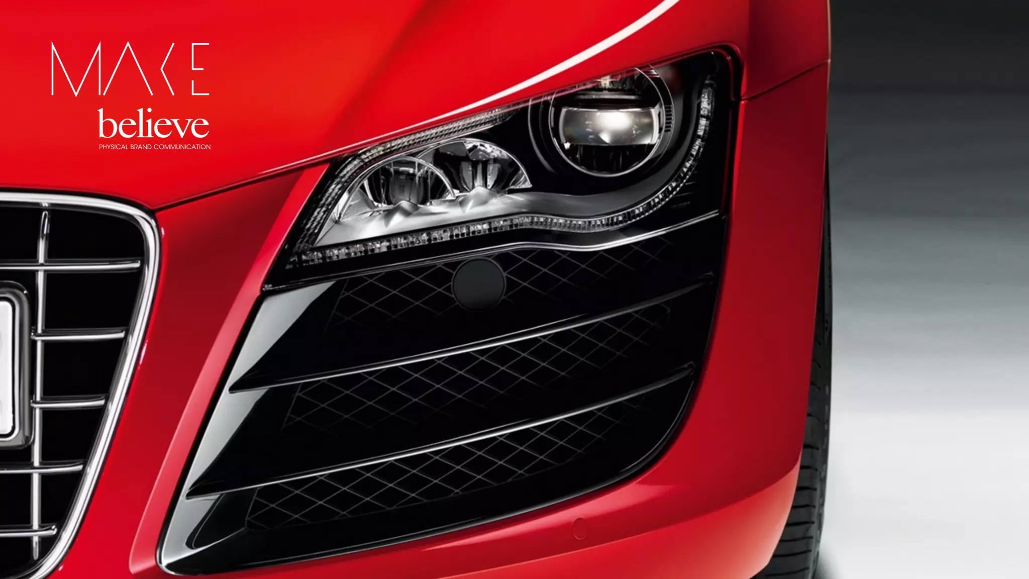 Studio Make Believe created furniture for Audi showrooms using actual car parts as inspiration to perfectly reflect Audi's design and values. Specific designs came from examining parts like petrol caps, which became a housing for spotlights, and roll bars, which became table and bench legs. The overriding message was that Audi designs cars with such beauty that their components could be welcomed into people's homes, showing the high quality of Audi's design. The furniture range was so well received that Audi used it in their next UK-wide outdoor advertising campaign.