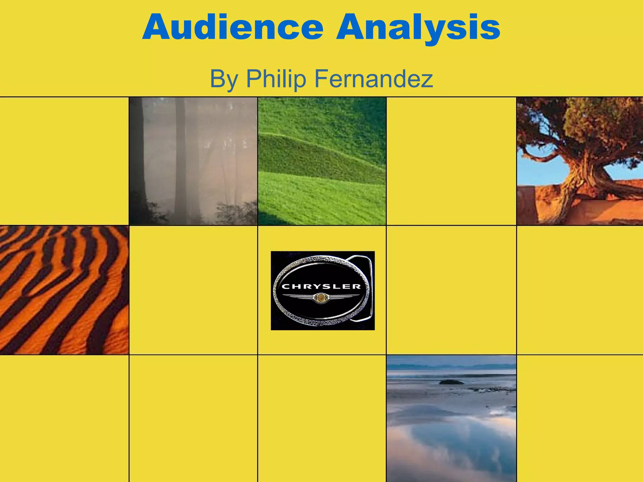 The document analyzes the target audience for a Jeep advertising campaign - seniors ages 50-70. It identifies key considerations for this audience as cost, reliability, and safety features. While some seniors will be open-minded to new technology, others are more conservative. Successful advertising ideas would promote the Jeep's low fuel consumption, ergonomic design, reliability and safety features to appeal to this rational audience. Highlighting exploration opportunities but avoiding ads focused on speed or young drivers would resonate best.