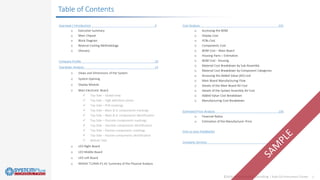 The document is a comprehensive report on the reverse costing analysis of the Audi Q3 instrument cluster, detailing methodologies, physical analysis, and cost estimations. It includes sections on teardown analysis, bill of materials (BOM), manufacturing processes, and financial ratios. Additionally, the report provides insights into system components and manufacturing costs, making it a valuable resource for understanding the economics of the product.