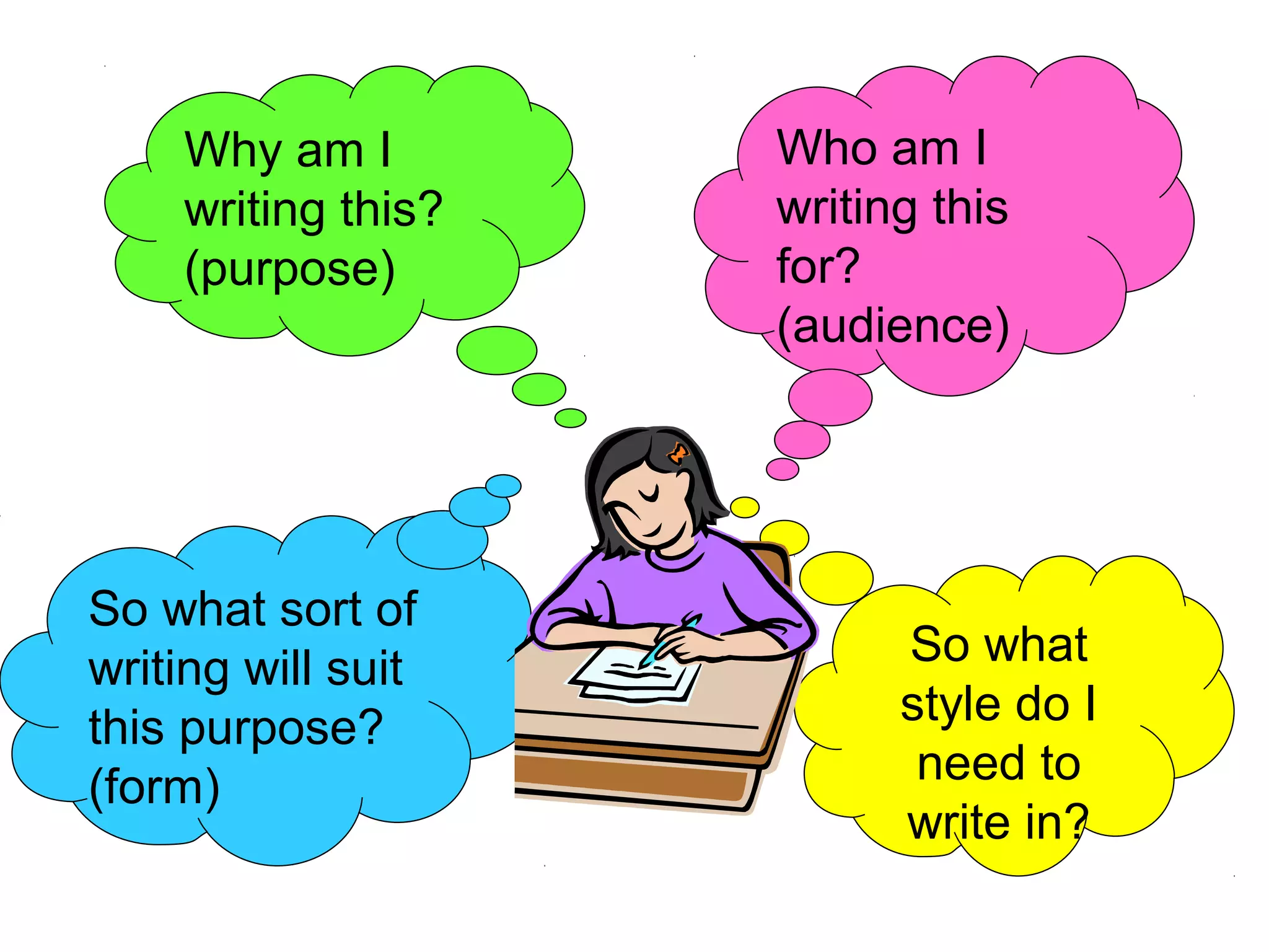 The document provides guidance on choosing an appropriate writing style based on the purpose, audience, and subject matter. It discusses considering the purpose (such as informing or persuading), audience (whether you know them personally or not), and subject matter (whether it is factual or subjective). Based on these factors, it recommends choosing from several forms (such as reports, discussions, or instructions) and styles (formal, informal, personal, or impersonal). The goal is to use a style that clearly and explicitly conveys the intended message to the intended readers.