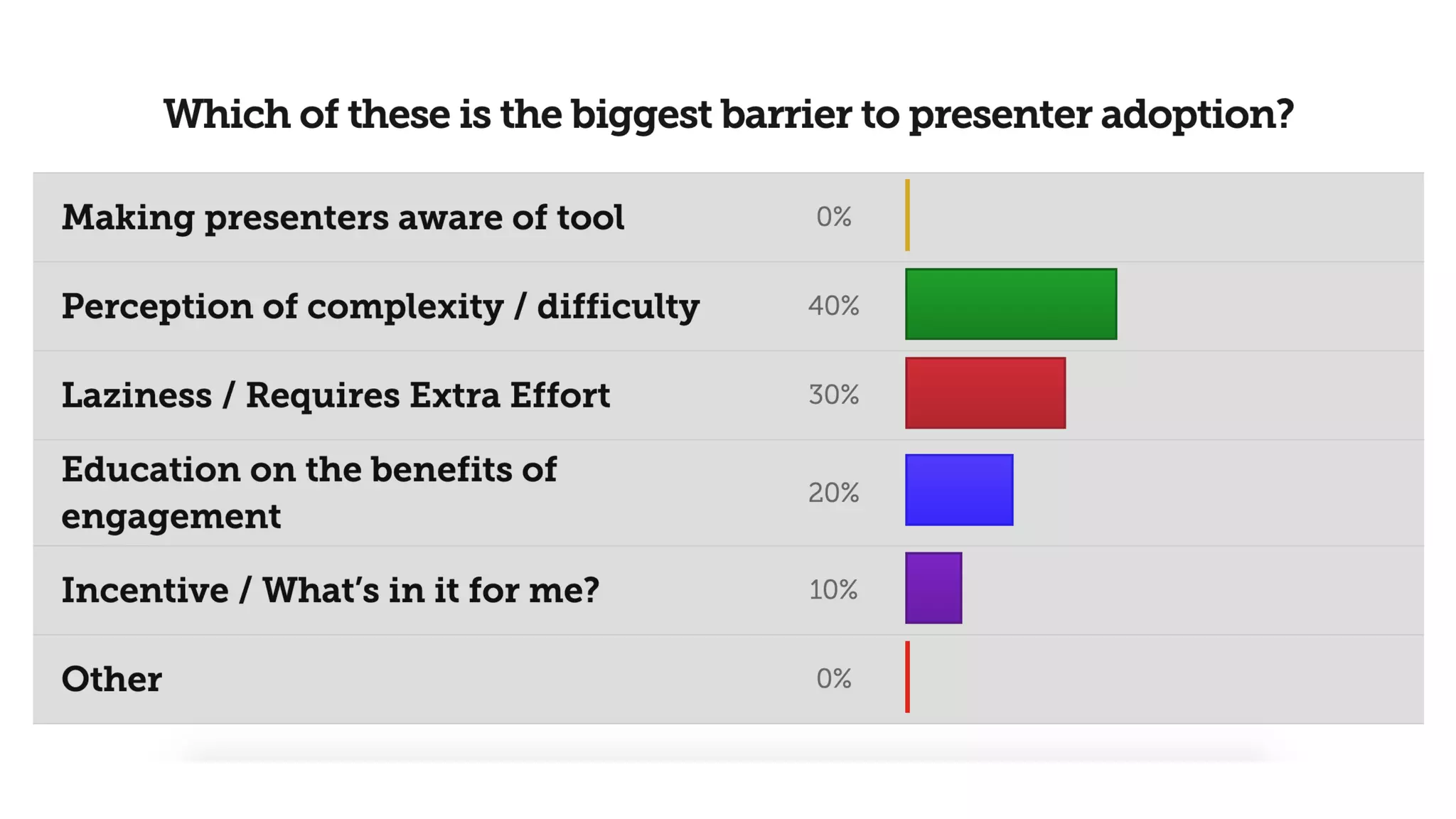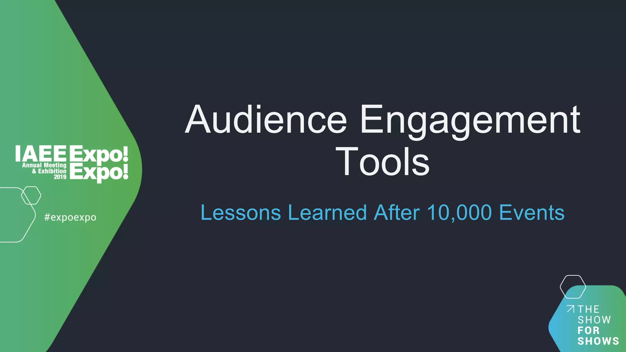 This document provides lessons learned from using engagement tools at over 10,000 events with 3 million attendees. It discusses why engagement is important for effective learning. Traditional lecture-based learning results in only 20% knowledge retention, while active learning approaches lead to 70-90% retention. The document outlines common barriers to engagement, including attendees not participating, presenters not adopting tools, and a lack of follow-up after events. It provides tips for improving participation, such as incentivizing and gamifying engagement. It also suggests educating presenters on the benefits of tools and requiring them to address questions after events. Measuring engagement goals and using data to improve is also recommended.
