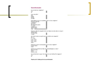 We conducted audience research using quantitative methods such as questionnaires. The questionnaires provided results about our audience. The results revealed important insights about who comprises our audience.