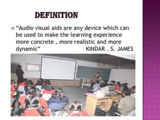 Audio visual aids like graphics can help illustrate concepts and ideas. Graphic aids include charts, diagrams, maps, and other visual depictions that help explain topics. These types of visual aids can assist with teaching and learning by complementing verbal explanations with visual representations.