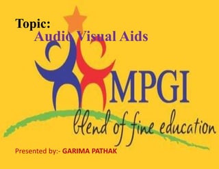 The document discusses audio visual aids in education. It defines audio visual aids as instructional materials that use both hearing and sight to convey information. Some key points made in the document include: