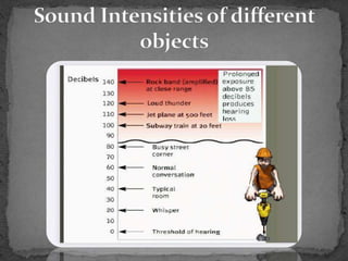 Audiometry is a procedure used to measure hearing acuity through the use of an audiometer. It is more precise than tuning fork tests and provides quantitative measurements of a person's lowest level of intensity at which they can hear particular tones or frequencies. The procedure involves placing headphones on a subject seated in a soundproof room and checking their response to sounds of varying intensities at different frequencies presented to each ear separately. The results are recorded on an audiogram to graphically represent the subject's hearing abilities.