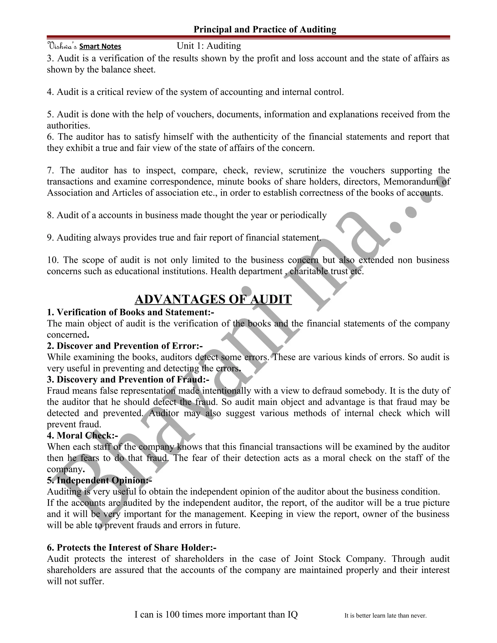 3. Auditing provides benefits such as detecting errors and fraud, protecting shareholder interests, checking directors and management, and giving an independent opinion on the business's financial health. However, auditors also face limitations like not detecting every fraud and having to rely on information from company personnel.