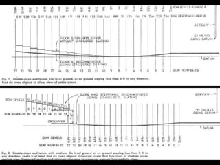 The document discusses key considerations in the design of auditoriums and recording studios. It addresses factors like room shape, dimensions, absorption, reverberation time, ambient noise levels, and how they impact acoustics. Optimal design aims to provide clear sound across all seating areas while avoiding echoes or other artifacts. Standards provide guidelines on design elements like volume-to-seat ratios and ceiling heights to achieve good speech intelligibility or musical quality depending on the room's function.