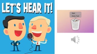 Auditory display is the presentation of information through sound. It involves translating data into sound that can be heard. There are different types of auditory display including audification, sonification, auditory icons, earcons, and spearcons. Principles of effective auditory display include compatibility, approximation, dissociability, parsimony, and invariance. Auditory display is best used for simple, short messages that require immediate action, while visual display is better for complex, long messages. Frequency, modulation, intensity, and separating warning sounds can improve auditory display effectiveness. An online hearing test is available from the hearing aid company ReSound.