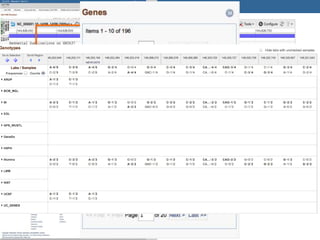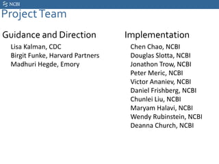 This document summarizes the GeT-RM Project and Browser, which collects and analyzes genetic variant data submitted by various clinical and research laboratories. It describes the project team members and submitting labs. It provides information on the types and platforms of tests conducted, validation methods used by labs, read count distributions, and gene-level concordance calculations. It also outlines future analyses, improvements to the browser, and inclusion of paralogous sequence variant data.