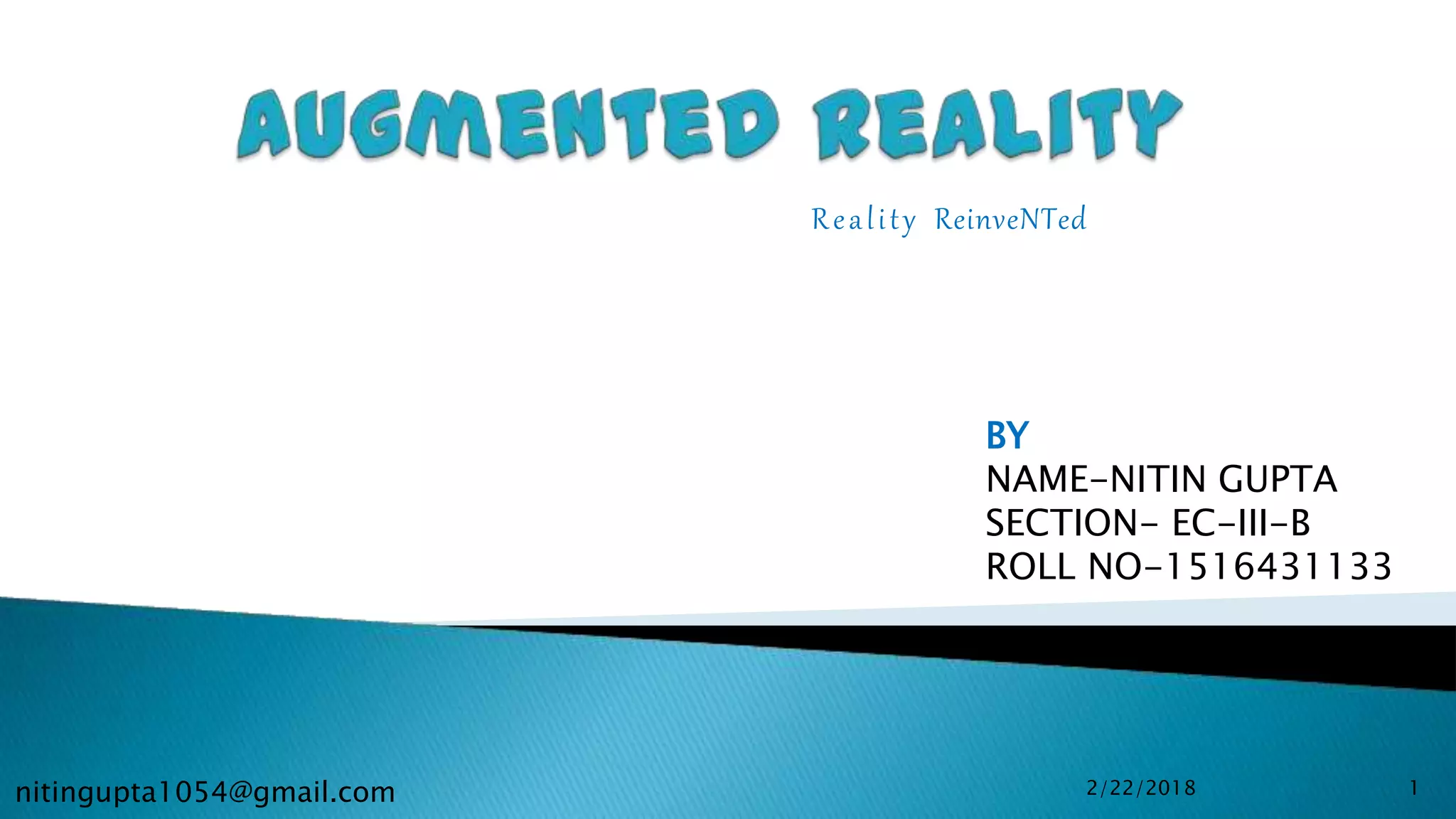 The document discusses augmented reality (AR), a technology that combines real and computer-generated data to enhance user perception of the world. It covers the components needed for AR systems, such as head-mounted displays and GPS tracking, as well as current limitations and future potentials in various sectors like education and gaming. The author emphasizes that overcoming technical challenges can lead to widespread adoption of AR technologies that might transform everyday experiences.