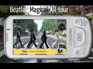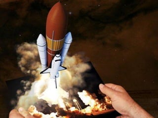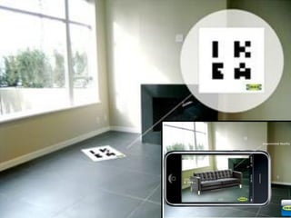 The document discusses augmented reality (AR) as a blend of real and virtual worlds, allowing real-time interaction with 3D content, and contrasts AR with virtual reality (VR). It highlights the potential of AR in education, predicting widespread use in the next few years for rich contextual and personalized learning experiences. Additionally, it outlines various AR applications, types, and the benefits of incorporating AR in educational settings.