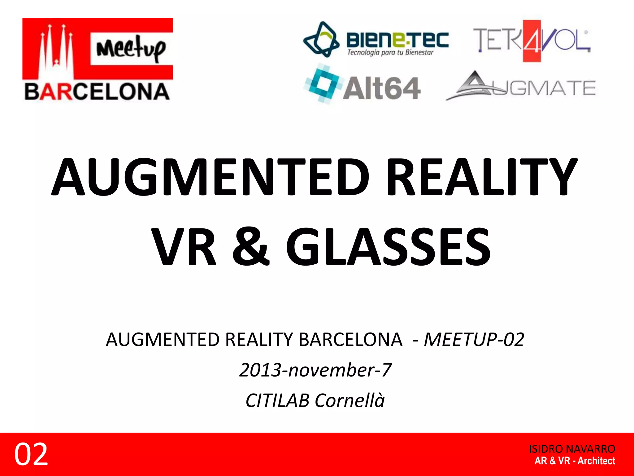 The document outlines the 'Augmented Reality Barcelona' meetup, initiated in 2013 with a focus on various aspects of augmented reality (AR) and virtual reality (VR) technologies. It discusses key technologies, applications, and significant manufacturers in the AR eyewear space, alongside the impact of AR in multiple sectors such as education, healthcare, and user interaction. Additionally, the document highlights the importance of wearable computing and eye-tracking technologies in enhancing user experiences and presents future event topics for community engagement.