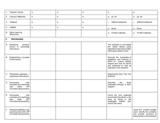 This document is a daily lesson log from an English teacher in the Philippines. It summarizes the objectives, content, activities, and assessment for lessons on the short story "Two Brothers" from ancient Egypt. The lessons aim to help students understand the story and evaluate its personal significance by having them analyze characters, plot events, identify problems and solutions, and discuss cultural similarities between ancient Egyptians and Filipinos. Formative assessments are built into the lesson activities and the teacher reflects on students' performance and areas for improvement.