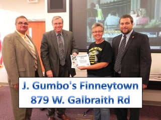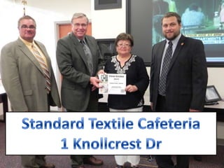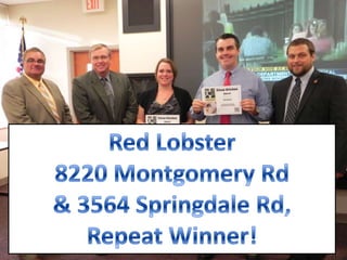 August 2013 Clean Kitchen Award Winners from Hamilton County Public Health. These are the winners who were present at the Board of Health meeting in September. A complete list of winners is available on our Website at www.hcph.org and then click "Clean Kitchen Awards."