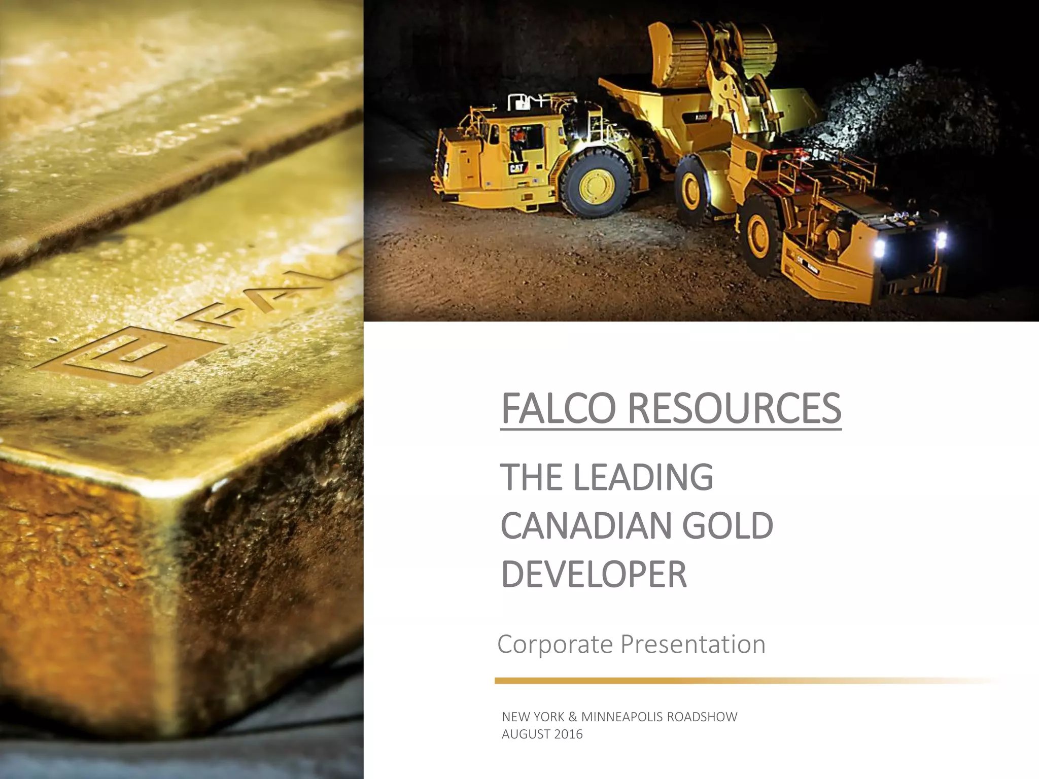 Falco Resources is a Canadian gold developer with its primary asset being the Horne 5 Project located in Rouyn-Noranda, Quebec. The project is targeting annual gold production of 236,000 ounces over an initial 12 year mine life with low all-in sustaining costs of US$427 per ounce and a post-tax NPV of C$667 million at a 5% discount rate. Falco Resources has an experienced management team and is advancing the project towards feasibility and permitting with the goal of beginning production in mid-2020.