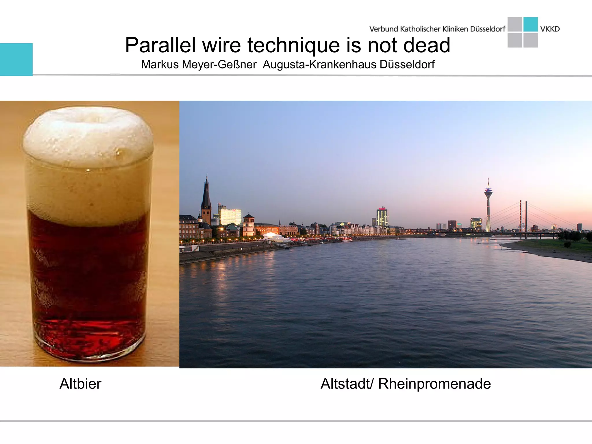 The document discusses the parallel wire technique for chronic total occlusion (CTO) procedures. It was first described in 1995 in Frankfurt, Germany. The technique uses double lumen catheters to support introducing two guidewires in parallel through the occlusion. While controlled dissection reentry can fail, the parallel wire technique has a success rate of 30% in such cases and 17% of the author's own 509 CTO procedures from 2011-2015 used this technique successfully. The conclusion is that despite claims the parallel wire technique is dead, it continues to be an important technique for CTO recanalization.