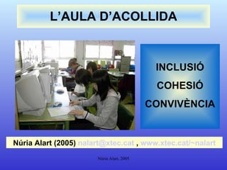 AULA D’ACOLLIDA Concepte: intermedi, obert, intensiu i flexible Funcionament: Nivells oberts . Atenció individualitzada. Interacció i cooperació. Treball per projectes interdisciplinars. Intel·ligències múltiples WebQuest Portfoli