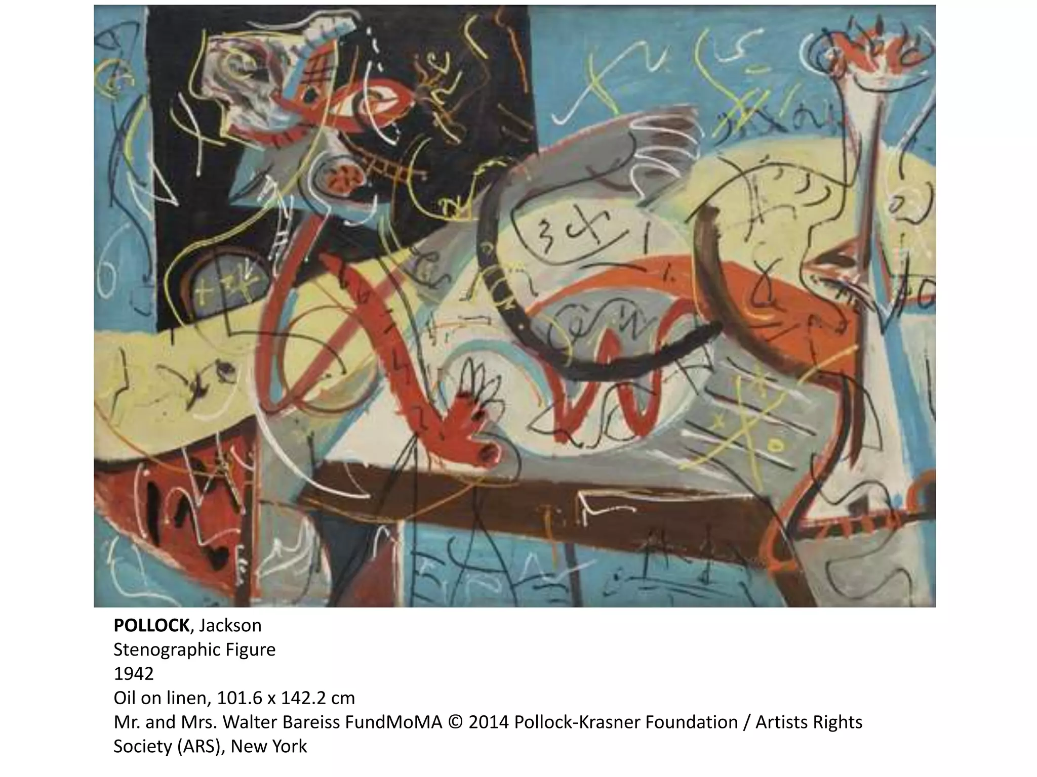 This document provides information on artworks created by American abstract expressionist artists Jackson Pollock, Mark Rothko, Arshile Gorky, and Josef Albers between 1936-1960. It includes over 50 artworks with details such as titles, dates, materials, dimensions and current locations. The artworks span each artist's career and showcase the progression and development of their unique abstract styles during the rise of American abstract expressionism.