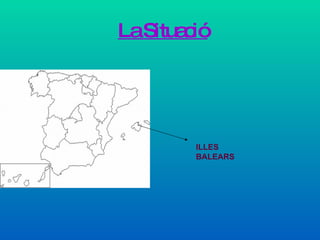 ILLES BALEARS Lescomunitats veïnes són Catalunya i Comunitat Valenciana. La capital de les illes balears és Palma de Mallorca. Només té una província. Hi ha 1.094.972 habitants distribuïts per Mallorca, Eivissa, Formentera, Cabrera i Menorca. Escut de les illes Balears