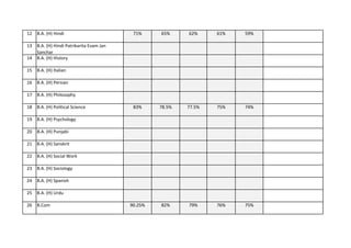 The document provides a list of courses and their cut-off percentages for various categories (general, OBC, SC, ST, PWD) for the second cut-off of the 2015-16 academic year at Sri Aurobindo College. Courses include B.A., B.Com., and B.Sc. programs across multiple disciplines, with specific percentage cut-offs highlighted for each category. Overall, it serves as a reference for students applying to these programs based on their qualifications.