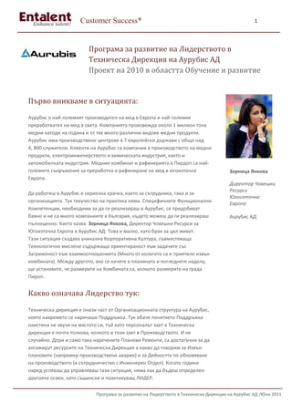 Какво означава: Да избереш най-подходящото от най-доброто? Крайъгълните Камъни на Стратегията на Entalent за Развитие на Лидерството (Entalent Approach to Leadership Development®), споделени чрез Добрата Практика: Програма за развитие на Лидерството в Техническа Дирекция на Аурубис АД, Проект на 2010 в категорията Обучение и Развитие.