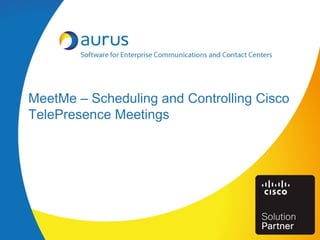 This document discusses MeetMe, a tool for scheduling and controlling Cisco Telepresence meetings. It allows employees to easily schedule meetings through Outlook or a web calendar, selecting participants and reserving audio/video ports and meeting rooms. The meeting organizer receives a link to control the meeting, adding or removing participants, muting microphones, and changing layouts. When scheduling, MeetMe considers the availability of Telepresence resources like ports and servers. It also enables secured meetings and confirmation of privileged meetings. MeetMe benefits include easier scheduling without engineers and control by organizers without assistance.
