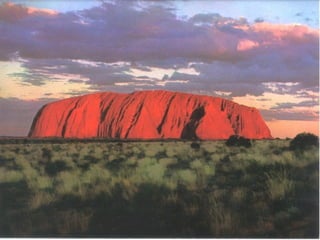 1) The document is notes from a geography lesson about Australia, including descriptions of key physical features like the Great Barrier Reef, Ayers Rock, Coral Sea, and Great Victoria Desert.