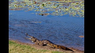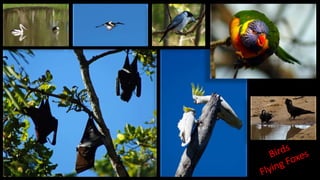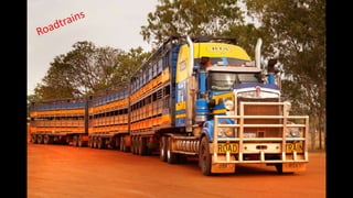 The document provides an overview of Australia, including its major cities, wildlife, landmarks, and regions. It notes that Australia has 23 million inhabitants and consists of 6 states and 2 territories. Key cities discussed include Sydney, Melbourne, Brisbane, and Perth. Important natural features covered are the Outback desert, Uluru, the Great Barrier Reef, and Kakadu National Park. Methods of travel and accommodation options for exploring Australia are also mentioned.