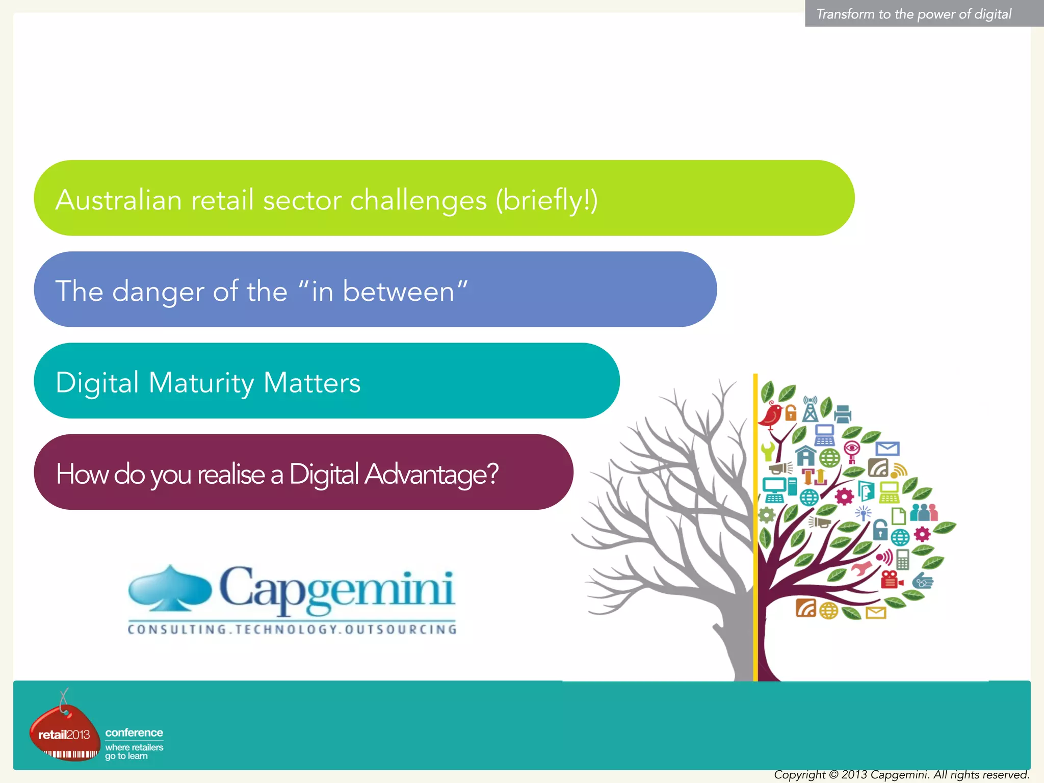 This document discusses how Australian retailers can gain a digital advantage. It finds that while Australian consumers are early adopters of digital technologies, retailers are struggling to keep up with evolving customer demands. The document advocates developing a digital maturity by balancing investments in digital capabilities ("what" an organization does digitally) with strong digital transformation management ("how" an organization approaches digital transformation). Only a few "Digirati" retailers have achieved this, demonstrating both a digital vision and measurable business results from integrated digital initiatives. The document argues all retailers should take action now to develop their own digital DNA and close the gap with digitally mature competitors.