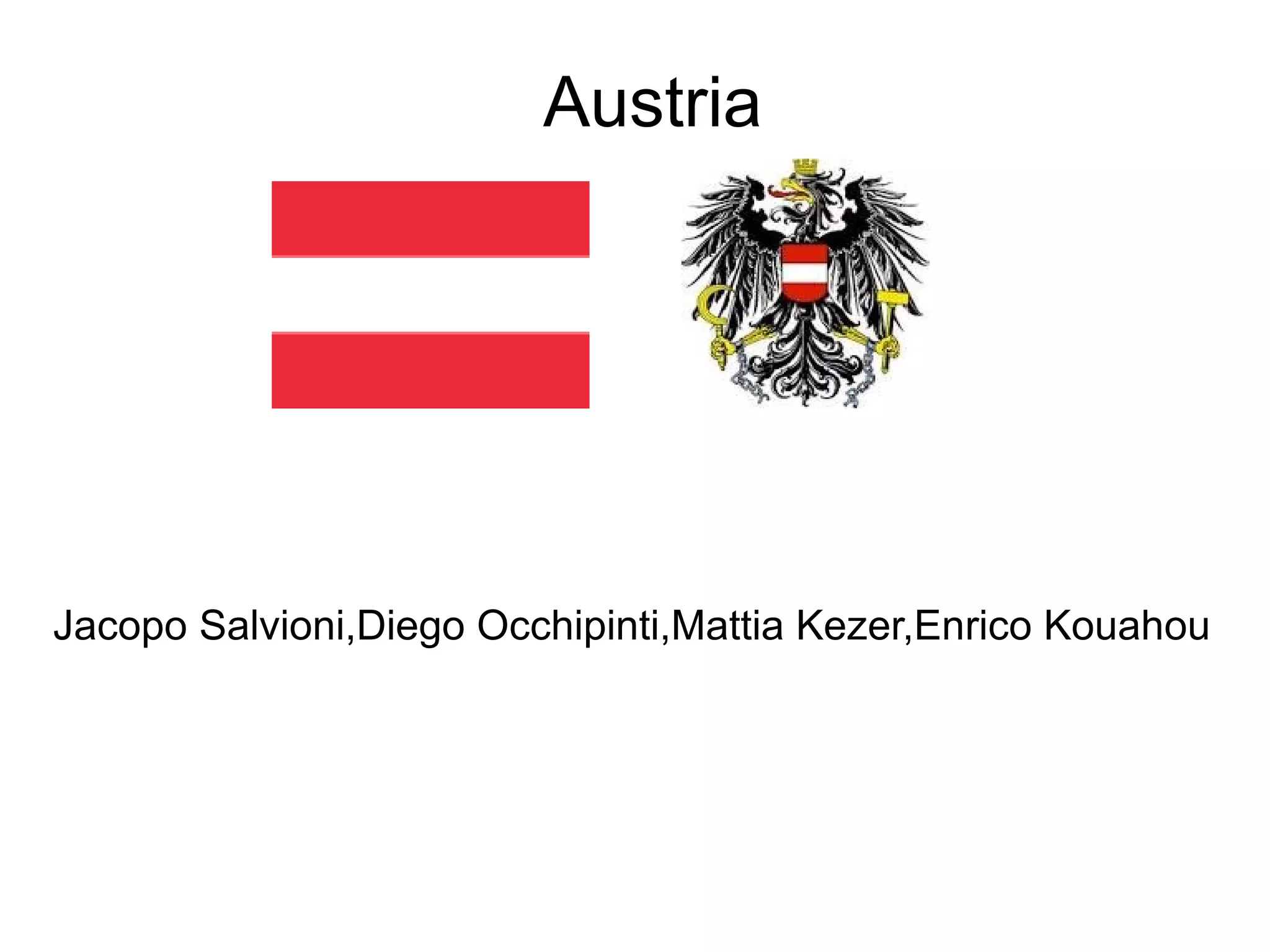 L'Austria è una repubblica federale con Vienna come capitale, caratterizzata da un territorio montuoso e una significativa presenza del Danubio. L'economia è diversificata, con settori principali nell'industria, agricoltura e turismo, e il tedesco è la lingua ufficiale. La cultura austriaca è influenzata da artisti come Mozart e dalle tradizioni culinarie locali, tra cui la torta Sacher.