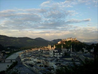 The document provides information about Austria through a quiz, discussing typical dresses, famous figures, flags, languages spoken, famous foods, neighboring countries, and current president. It also promotes learning about Austrian culture through a video about Krampus and Nikolas traditions.