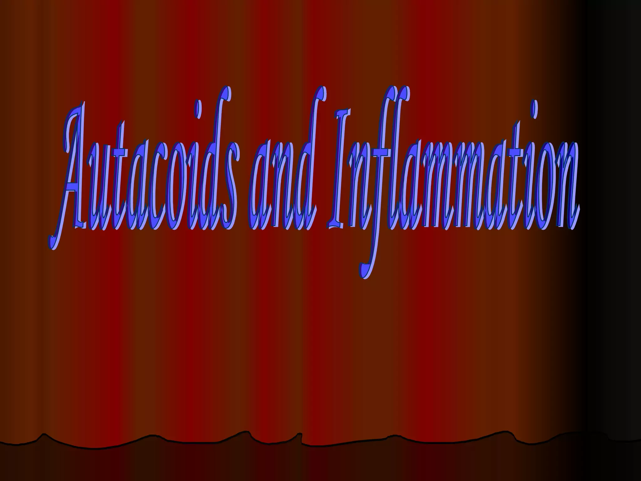 The document discusses autacoids and inflammation. It describes how within 5 minutes of being stung by a bee, a boy develops a swollen, red lesion at the site of injury. The predominant finding in tissue from the lesion would be neutrophilic migration (D). Autacoids like eicosanoids and histamine are involved in the inflammatory response and produce effects like vasodilation, pain, swelling and fever. Prostaglandins, thromboxanes and leukotrienes derived from arachidonic acid mediate inflammation.