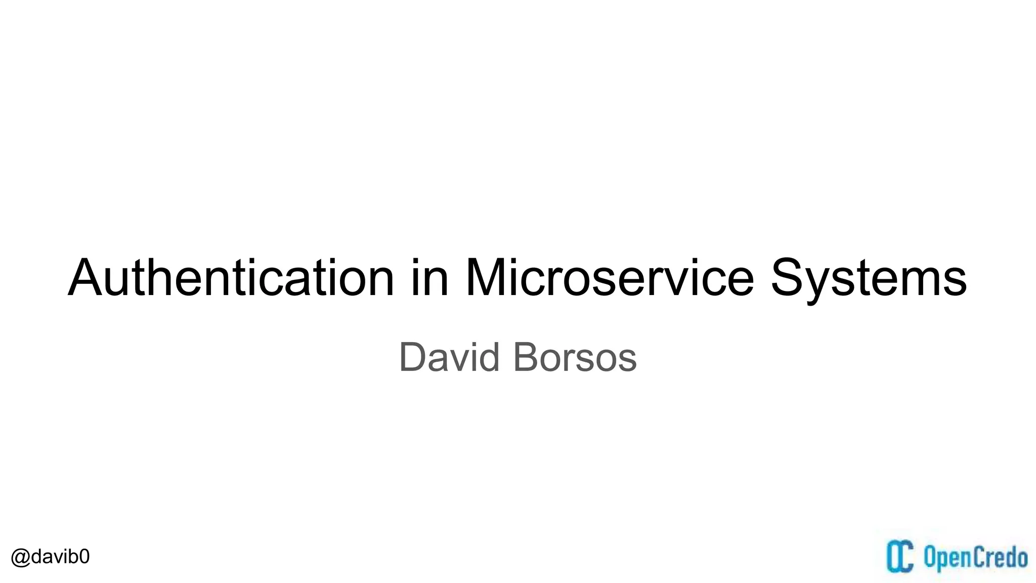 The document discusses authentication and authorization strategies for microservice systems, highlighting challenges such as shared user databases, credential ownership, and service switching. It presents various solutions including Single Sign-On (SSO), distributed sessions, client-side tokens, and the use of an API gateway, each with their own security and implementation considerations. The author emphasizes the importance of statelessness and transparency in designing effective authentication mechanisms.