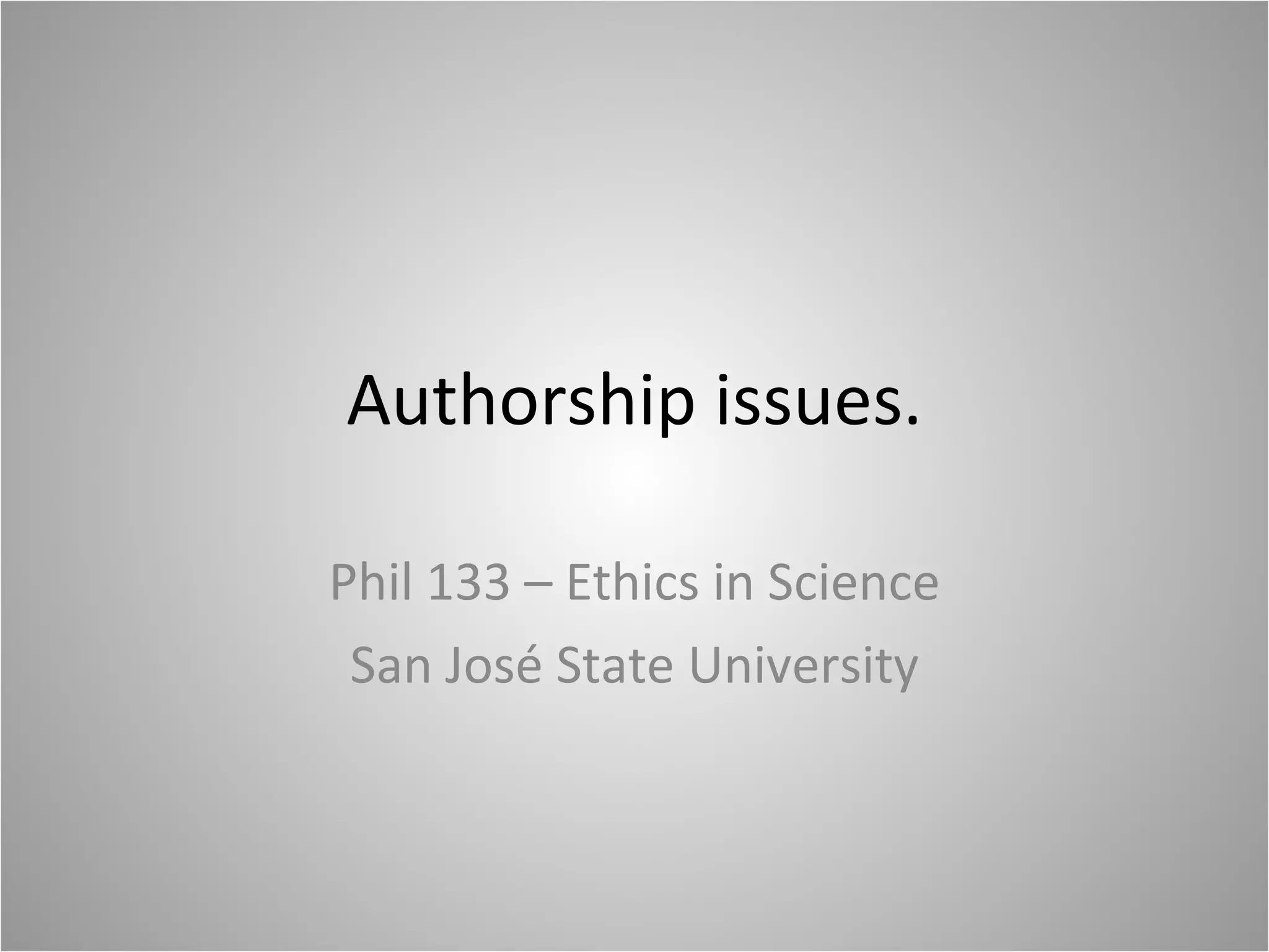 The document discusses the importance of authorship in scientific research, emphasizing issues of credit, accountability, and communication within the scientific community. It outlines various conventions on author listings and the criteria for authorship as per ICMJE standards, highlighting the complexities and potential pitfalls of attributing credit accurately. The text also critiques peer review practices and raises questions about the decision-making power of a limited number of reviewers on the scientific discourse.