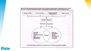 Autism is a neurological disorder that affects social interaction and communication. It is characterized by repetitive behaviors and restricted interests. The causes are largely genetic but also involve environmental factors. Symptoms begin in early childhood and can range from mild to severe. Diagnosis involves observation of behaviors and developmental screening. While there is no cure, early intervention and support can help children with autism reach their full potential.