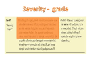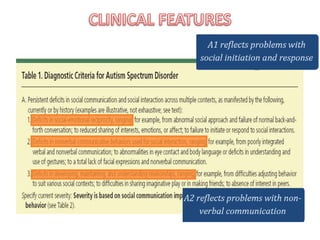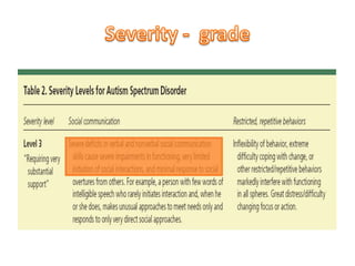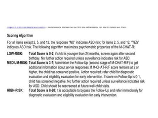 Autism spectrum disorder is characterized by difficulties with social communication and restricted behaviors. Screening with a validated tool at 18- and 24-month well-child visits can assist with early detection. Applied behavior analysis-based early intensive behavioral intervention delivered over an extended time frame improves cognitive ability, language, and adaptive skills. Medical management may also help target comorbid conditions, though behavioral intervention is usually most effective.