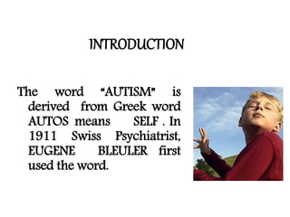 - Autism is a neurodevelopmental disorder characterized by difficulties in social interaction, communication, and repetitive behaviors.