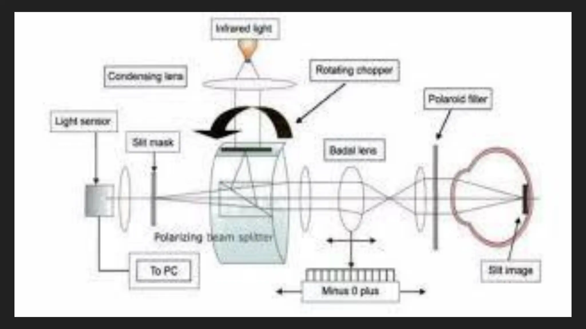 An Auto Refractometer (AR), also called an Autorefractor, is an optical instrument used to automatically measure the refractive error of the eye. It provides objective values of Sphere (Sph), Cylinder (Cyl), and Axis, which help in determining whether a person has myopia, hypermetropia, or astigmatism. This instrument works on the principle of infrared light reflection. During measurement, a beam of infrared light is projected into the eye, and this light passes through the cornea, lens, and reaches the retina. The reflected light then returns back through the same optical path. By analyzing the changes in the reflected light path, the machine calculates the amount of refractive error present in the eye.