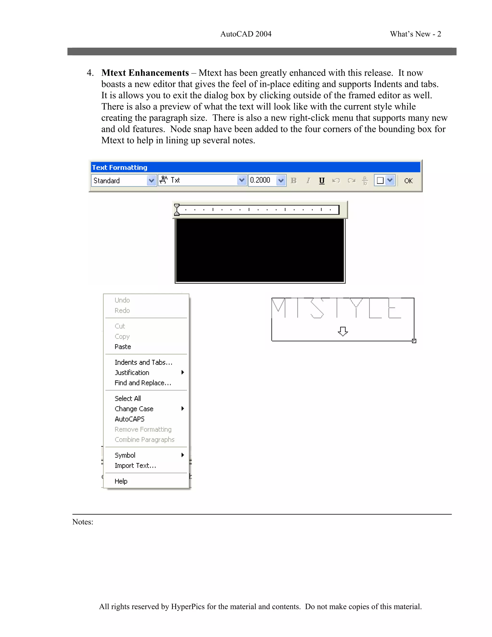 AutoCAD 2004 introduced many new features including a compressed file format for faster file access, a new license manager, gradient fills, enhanced Mtext capabilities, and new palette interfaces. It also included improvements to commands, system variables, and support for true color and digital signatures. The software was designed for compatibility with Windows XP and easier migration from prior versions.