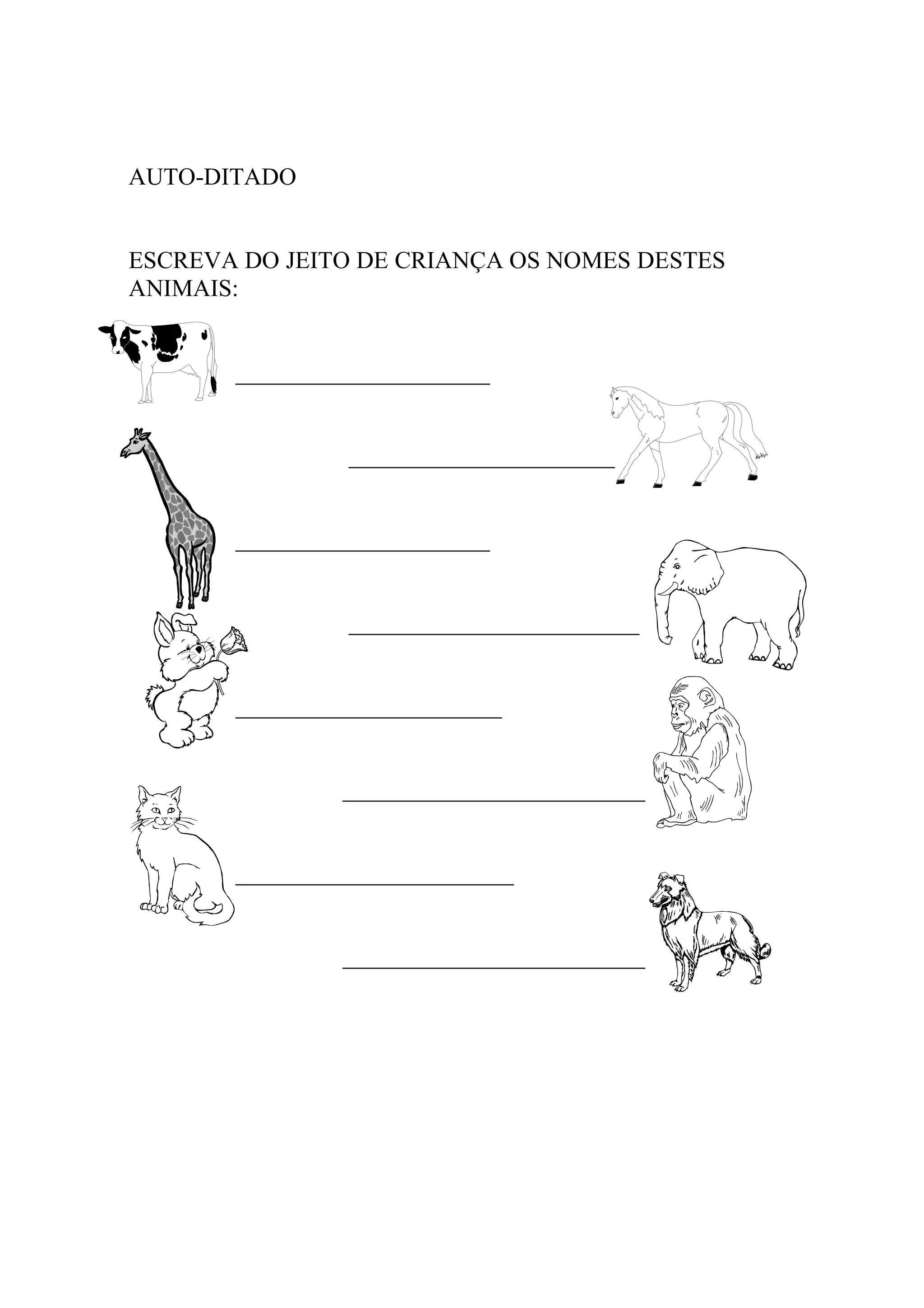 DE CRIANÇA OS NOMES DESTES ANIMAIS: _____________________ ______________________ _____________________ ________________________ ______________________ _________________________ _______________________ _________________________