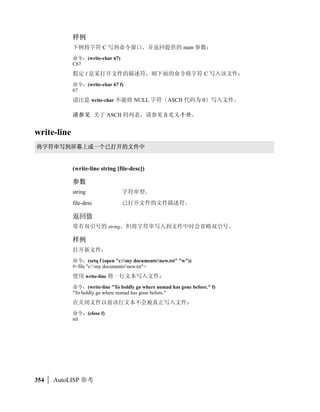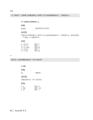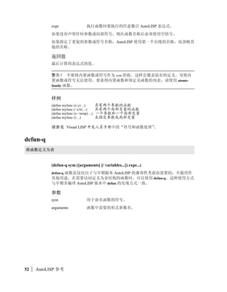 This document provides a list of AutoLISP functions and their descriptions. It includes over 100 AutoLISP functions ranging from basic math functions like +, -, *, / to more complex functions for working with lists, dictionaries, commands and more. The document also lists some related technologies that can interact with AutoLISP like ActiveX, Visual Basic, Delphi and Windows.
