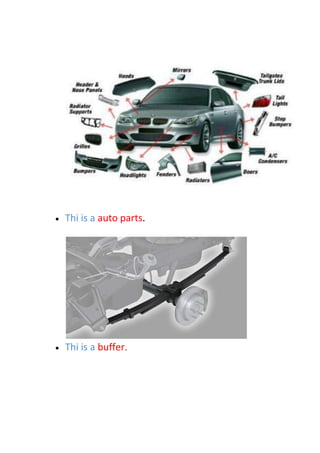 This document lists various auto parts including a motor, address system, auto parts, buffer, pneumatic, windshield, and springs.